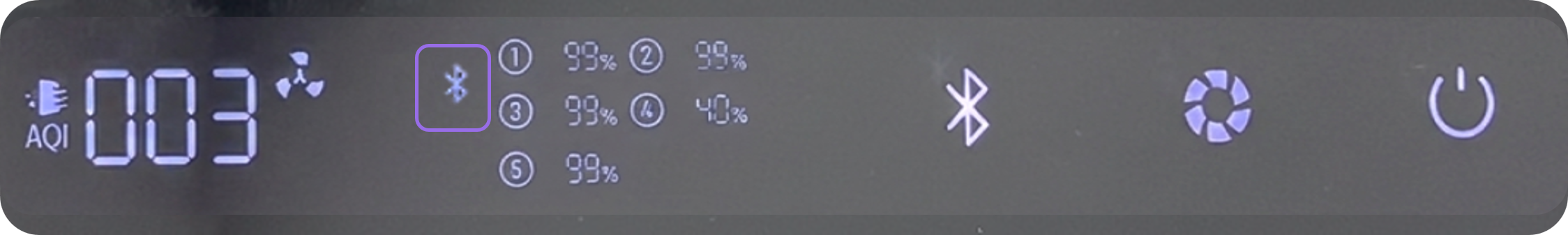 Once connected successfully, the Bluetooth icon on the purifier screen will stop flashing and remain solid .