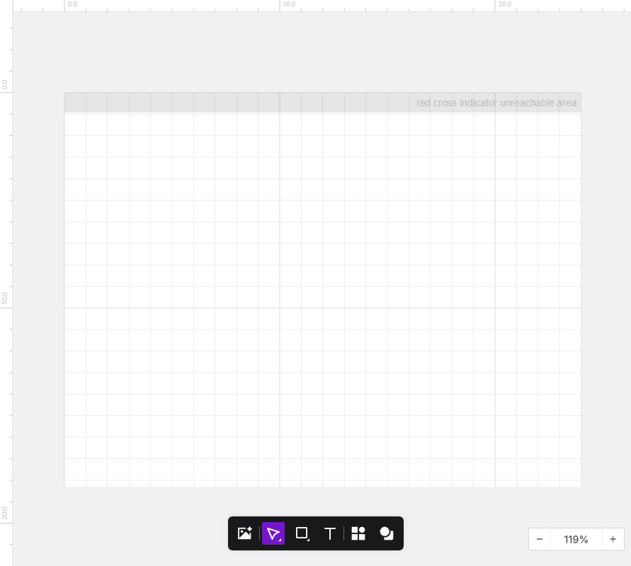 A small area near the top of the canvas cannot be reached by the red crosshair.