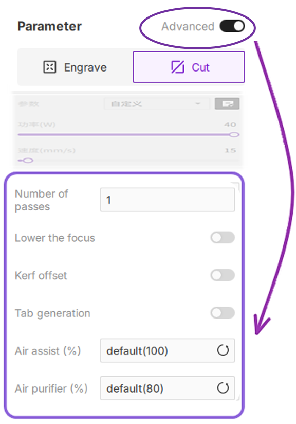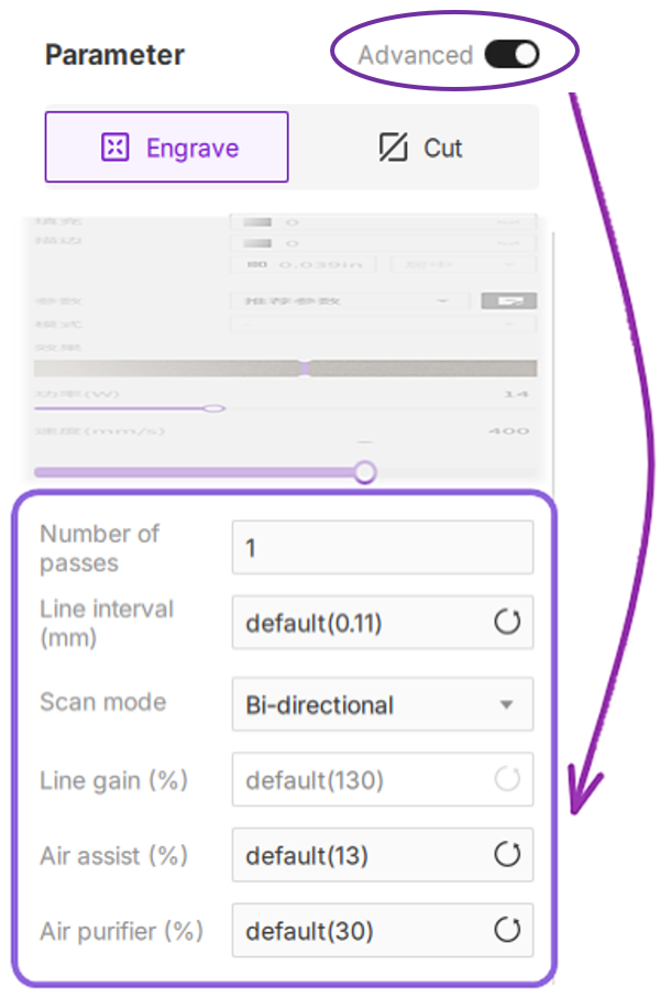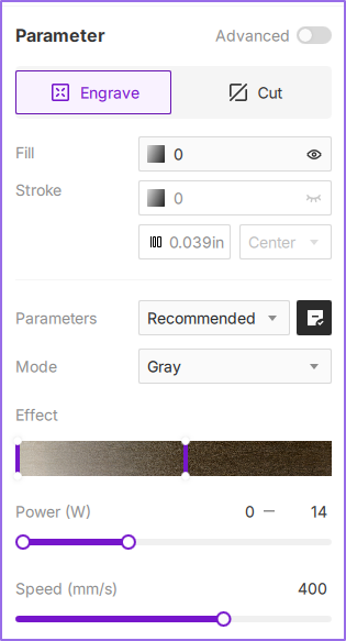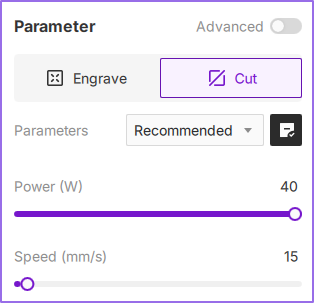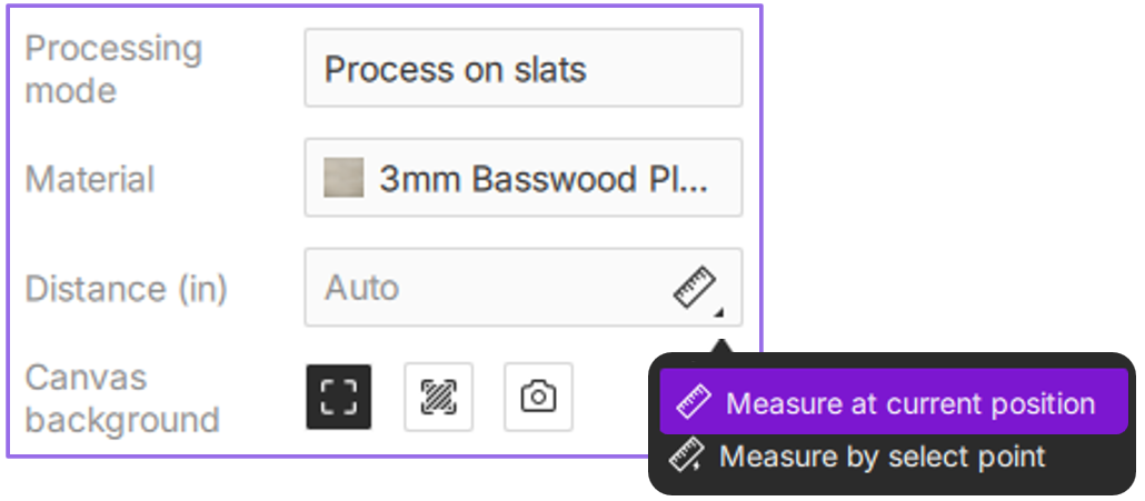 The Configuration Bar provides granular control over essential laser engraving and cutting parameters. Tailor settings to specific project types (vector or bitmap), material properties, and desired finishes. Optimizing these parameters is critical for achieving professional-grade output and maximizing workflow efficiency. This section details processing modes, material presets, distance measurement, and both basic and advanced parameter configurations.