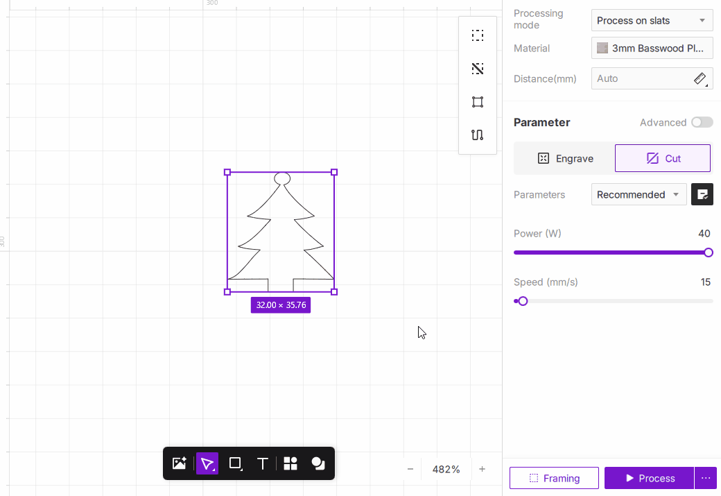 When you select an official material from the Material Library, the software automatically loads a set of recommended engraving parameters that have been fully tested for optimal performance.