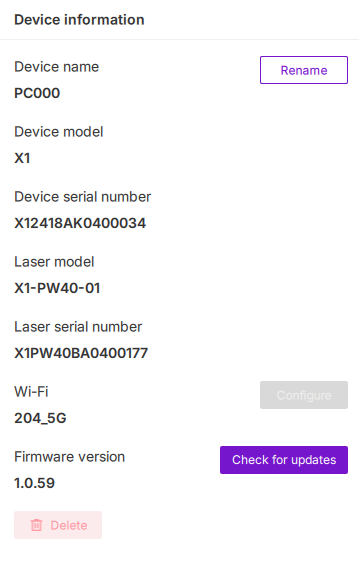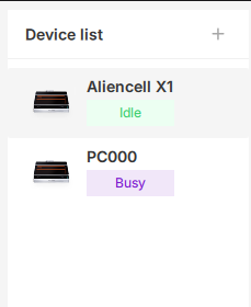 The Device Manager allows you to monitor the status of connected devices and perform configuration and optimization tasks. Once a device is connected in Aliencell Space, you can centrally manage all your machines through this page.