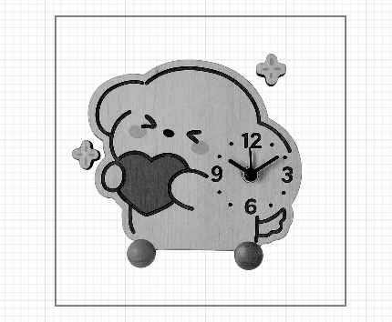 The image below shows the Grayscale mode with all advanced parameters set to their defaults. In this mode, the laser head scans the entire area of the image, line by line. It "paints" the image by continuously varying the laser power—higher power for dark areas, lower power for light areas—to create a design with smooth, gradual tones.