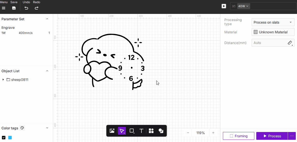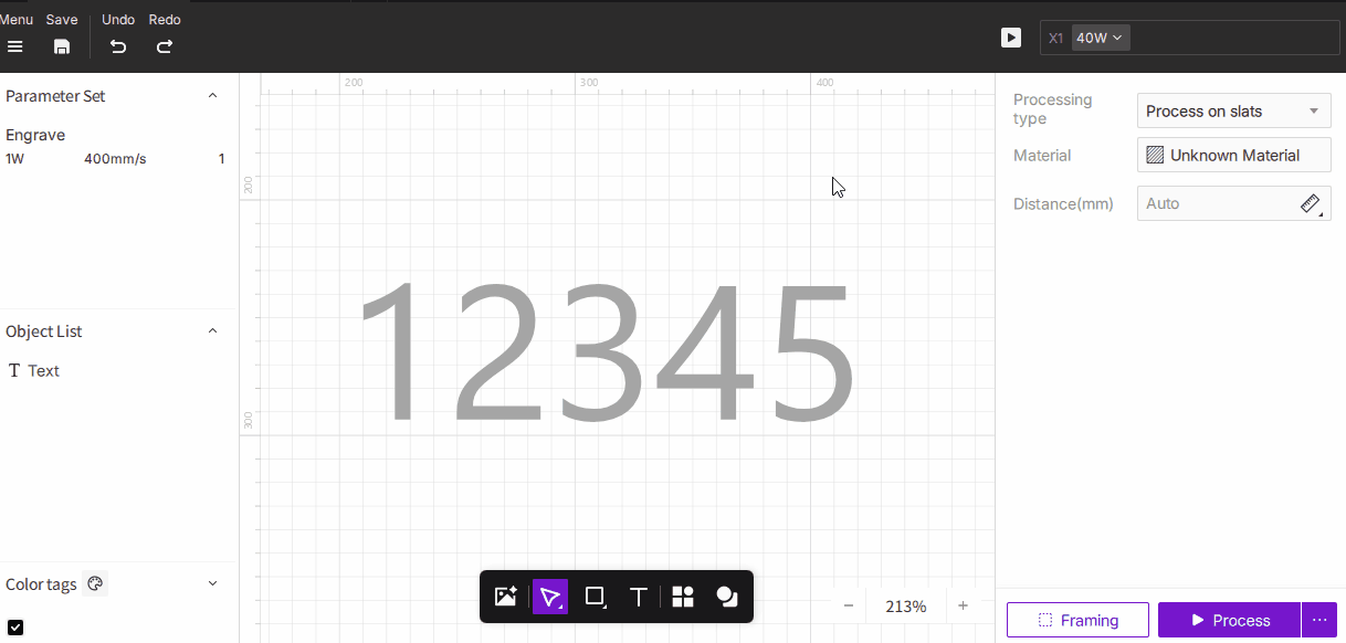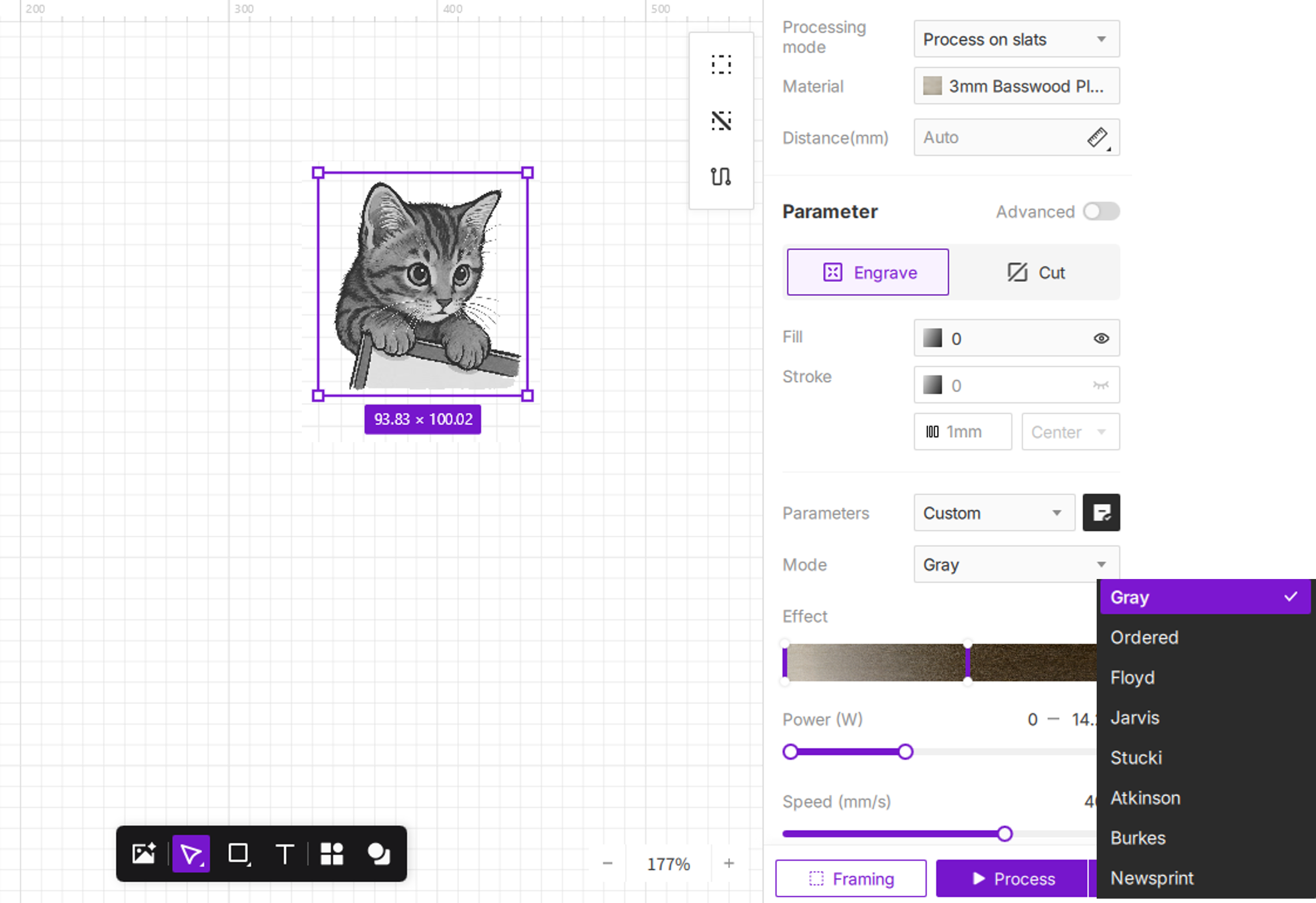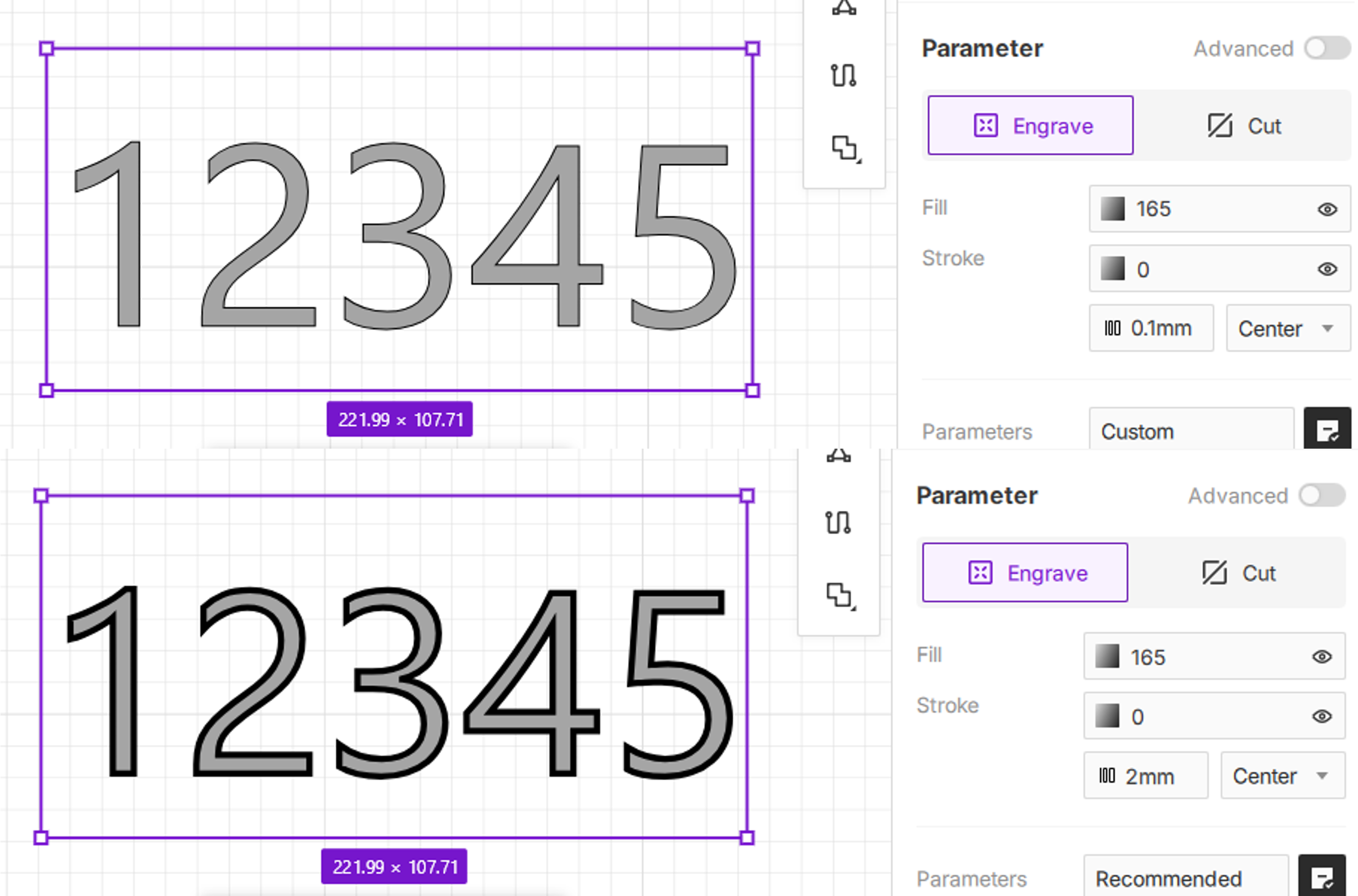 Drag the Effect slider to choose your desired engraving appearance. When you do this, the software will prioritize keeping the speed constant while adjusting the power value to match the visual effect.