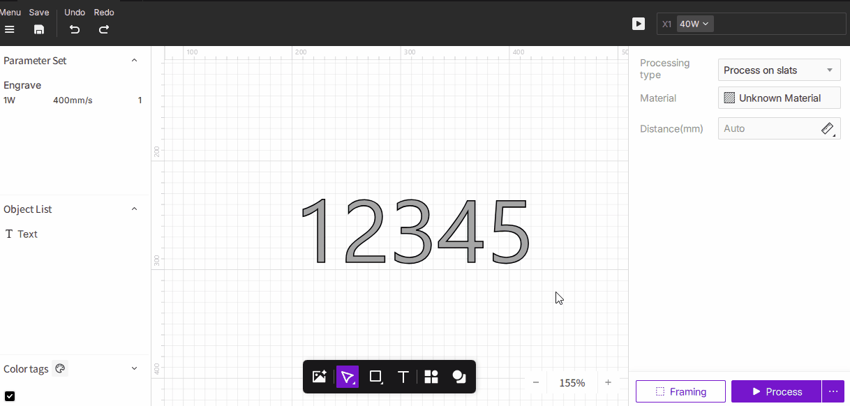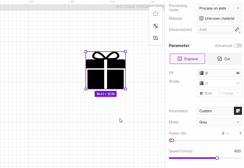 When you select an official material from the library, a set of tested, recommended engraving parameters will be loaded here automatically.