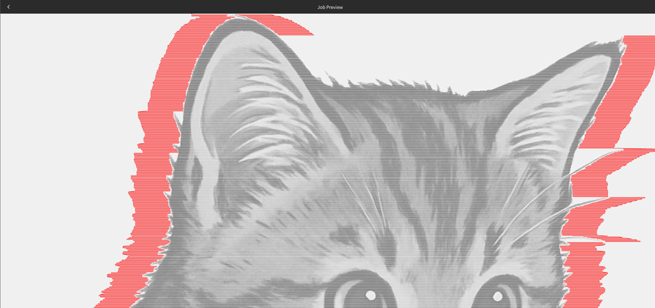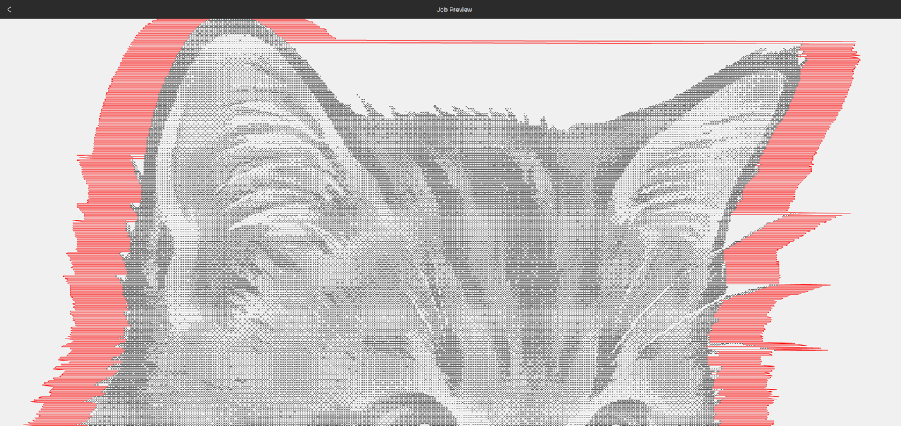The image below shows the Ordered mode with all advanced parameters set to their defaults. You can see the clear difference in the laser module's travel path compared to Grayscale mode. The laser module only moves over areas where dots need to be placed, resulting in shorter and more efficient travel paths.
