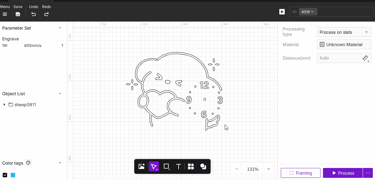 The Effect feature gives you an intuitive preview of the final result before you engrave, so you don't have to rely on abstract power and speed numbers. Based on your selected material, it simulates the depth and texture of the engraving, letting you see a virtual result before starting the job.