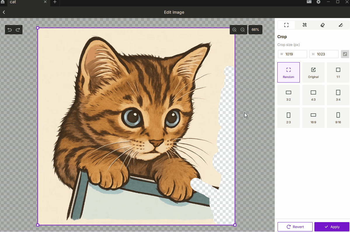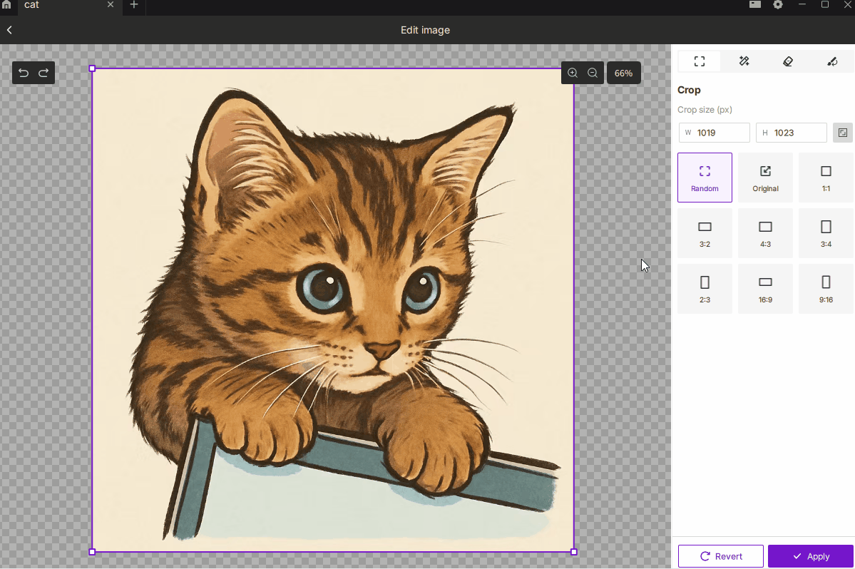 Choose Free or Fixed Ratio mode, with 9 common presets such as 1:1, 3:2, 4:3, 16:9, etc.