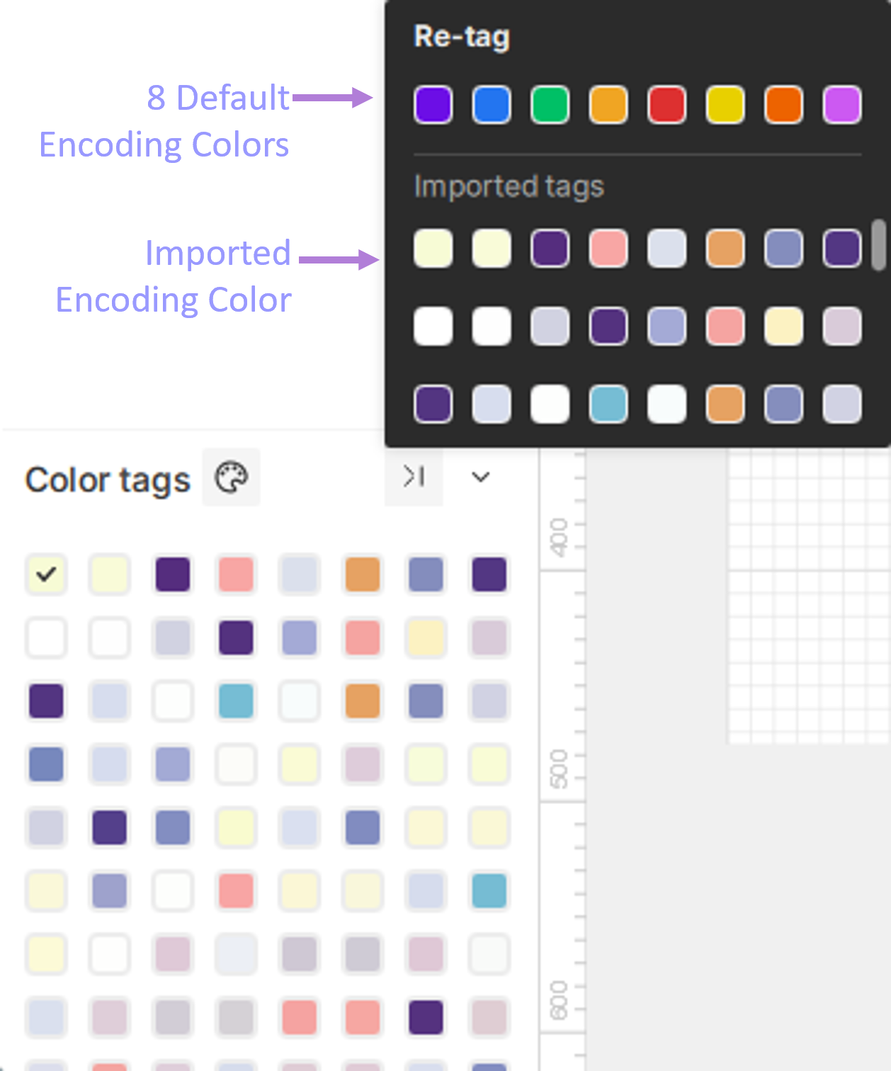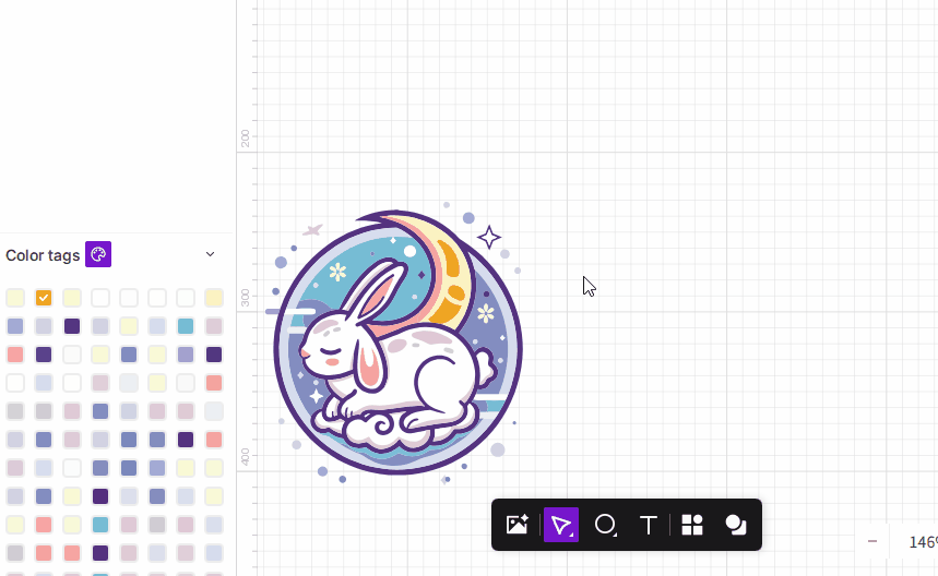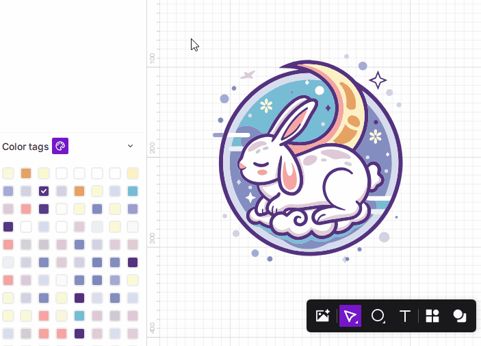 Color tags help you organize different object layers within your project. All tags currently in use can be viewed on the left side of the interface.