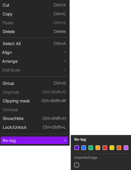 Re-Tag: Assign color tags to selected objects to help organize them during processing.