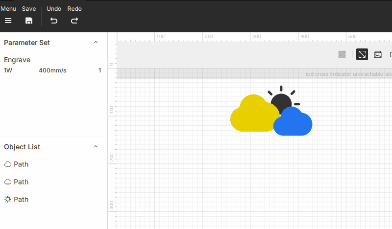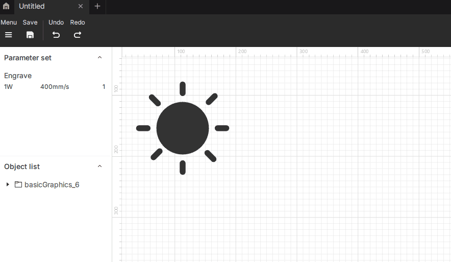 | Import – Support for image formats such as PNG, BMP, JPG, JPEG, SVG, and DXF. | Undo – Reverse the previous action. | |