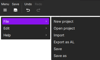 Export as AL – Export all objects on the canvas as an .al file. |