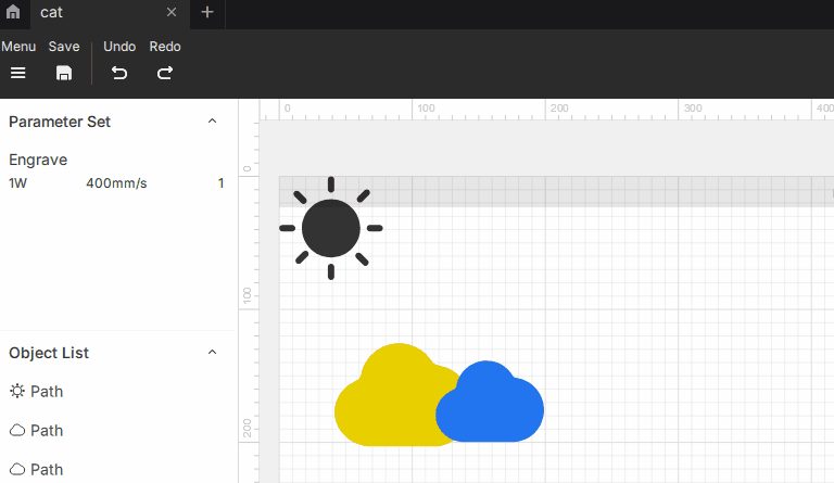 .alp– Project file containing complete design data: layers, paths, parameter settings, and object attributes. It is editable within the software..al– Machine file that contains path data and processing commands. It can be recognized and processed by the device but cannot be opened or edited in the software.