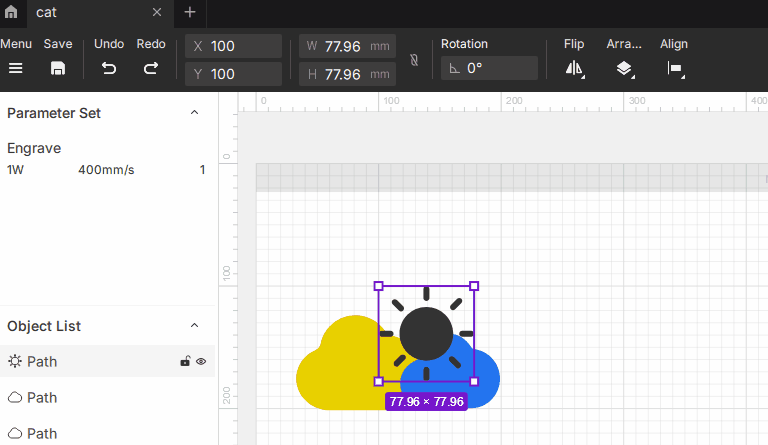 You can precisely move objects by editing the X/Y values, allowing accurate alignment or distribution among multiple objects.