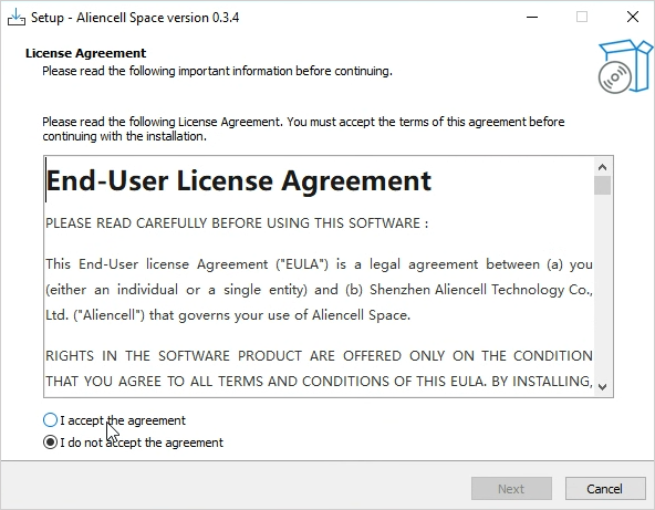 The setup wizard will show the license agreement. Please read it carefully, check “I accept the agreement”, and click Next to proceed.