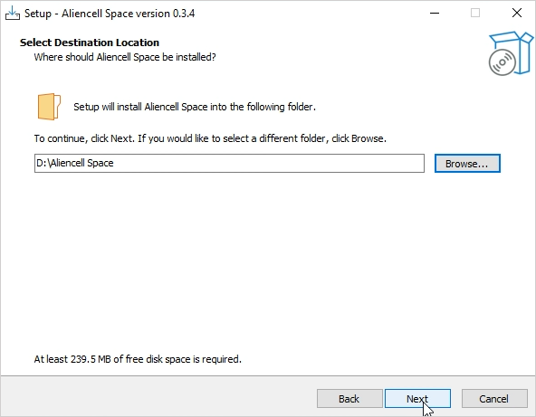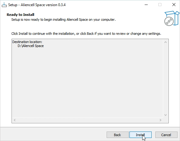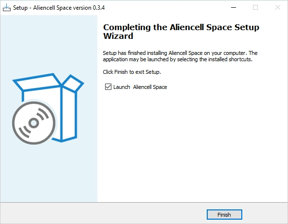Once the installation completes, you will see the Completing the Aliencell Space Setup Wizard screen. Click Finish to close the installer.