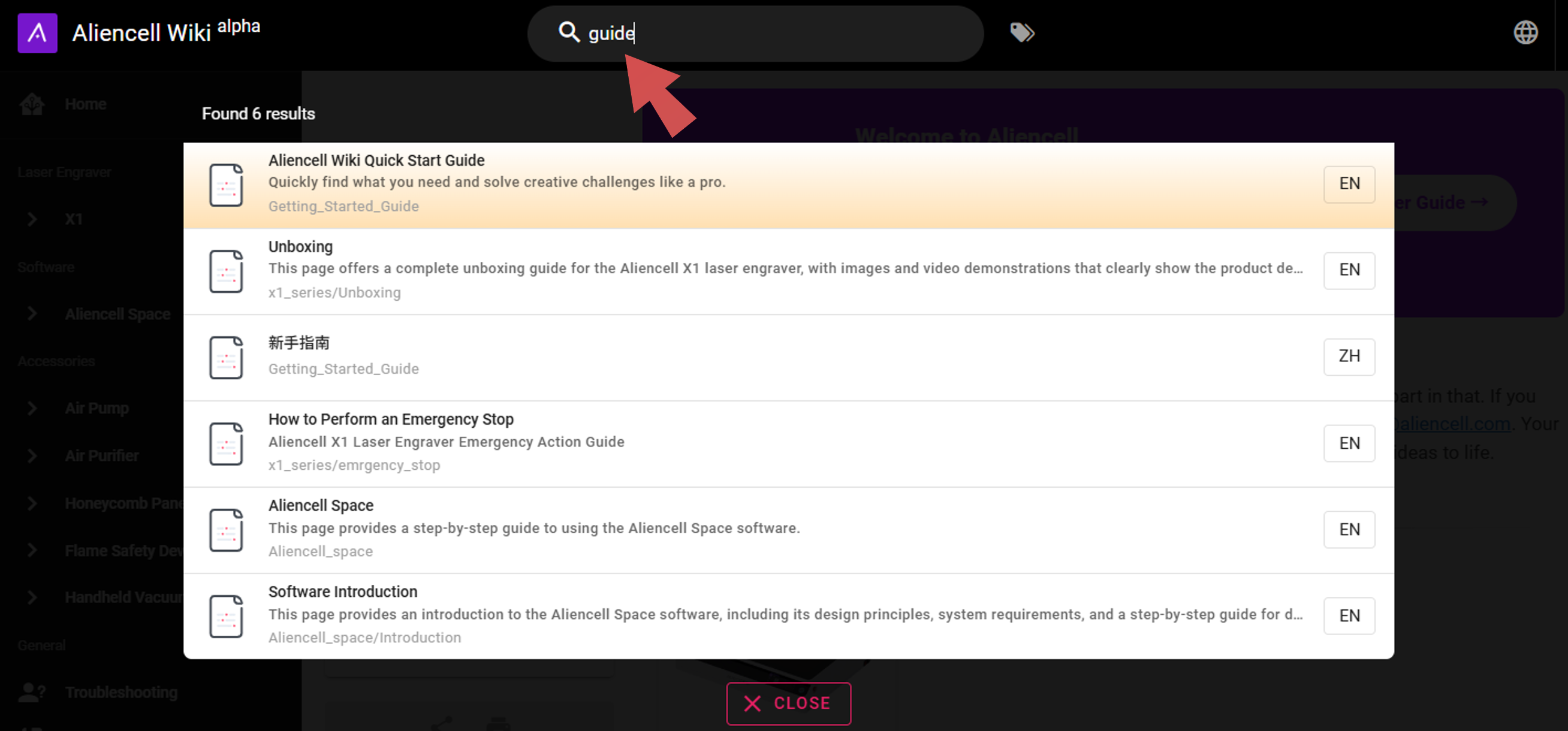 Whether you're dealing with a machine error, a connection issue, or just want to learn how to adjust a setting — the Aliencell Wiki gives you two easy ways to get help: