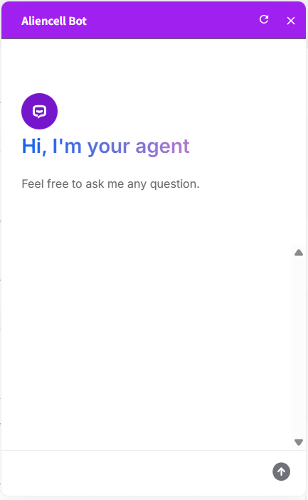 In the bottom-right corner of every page, the Aliencell Bot is ready to assist. Just type your question, and it will instantly suggest the most relevant articles, steps, or even animated tutorials.