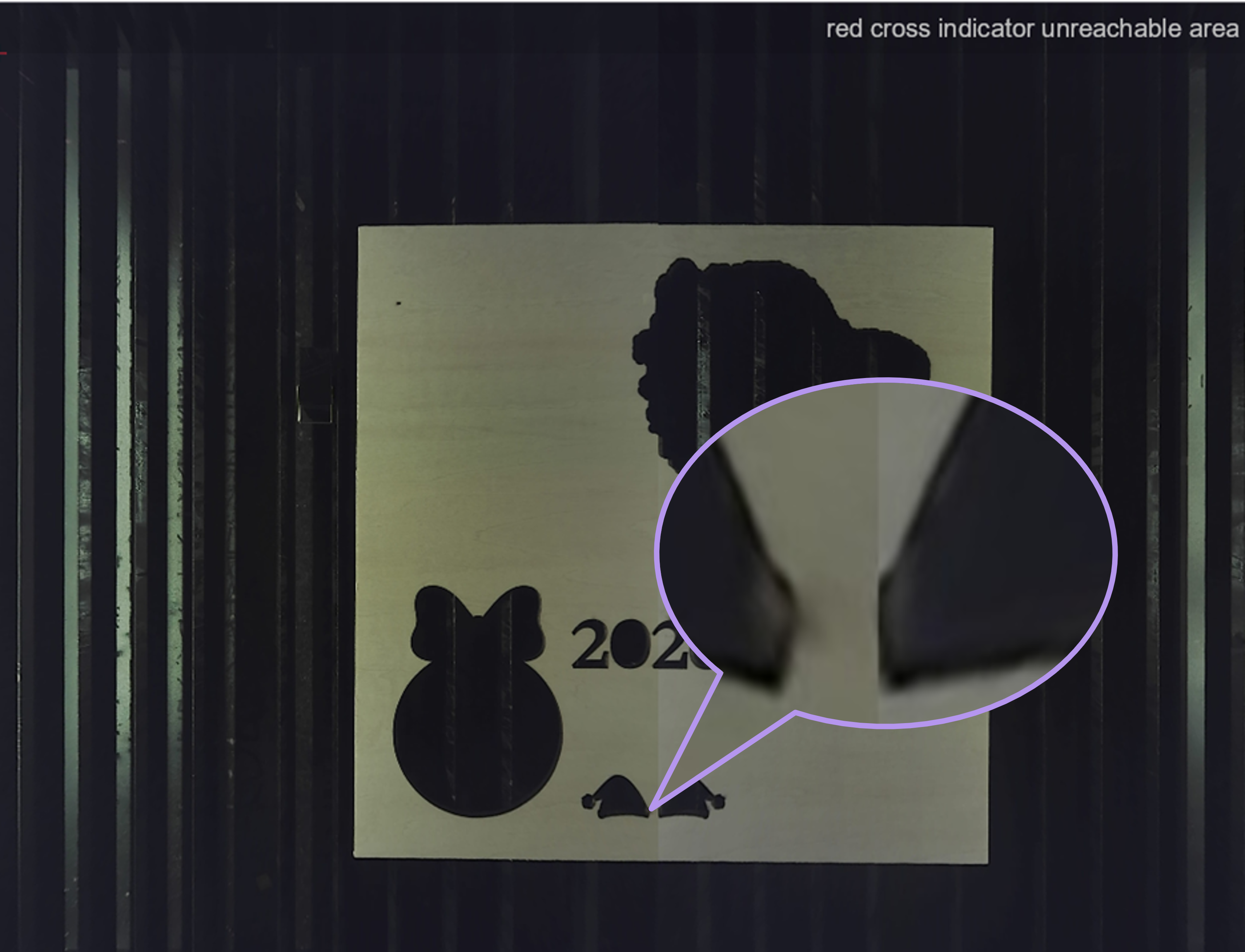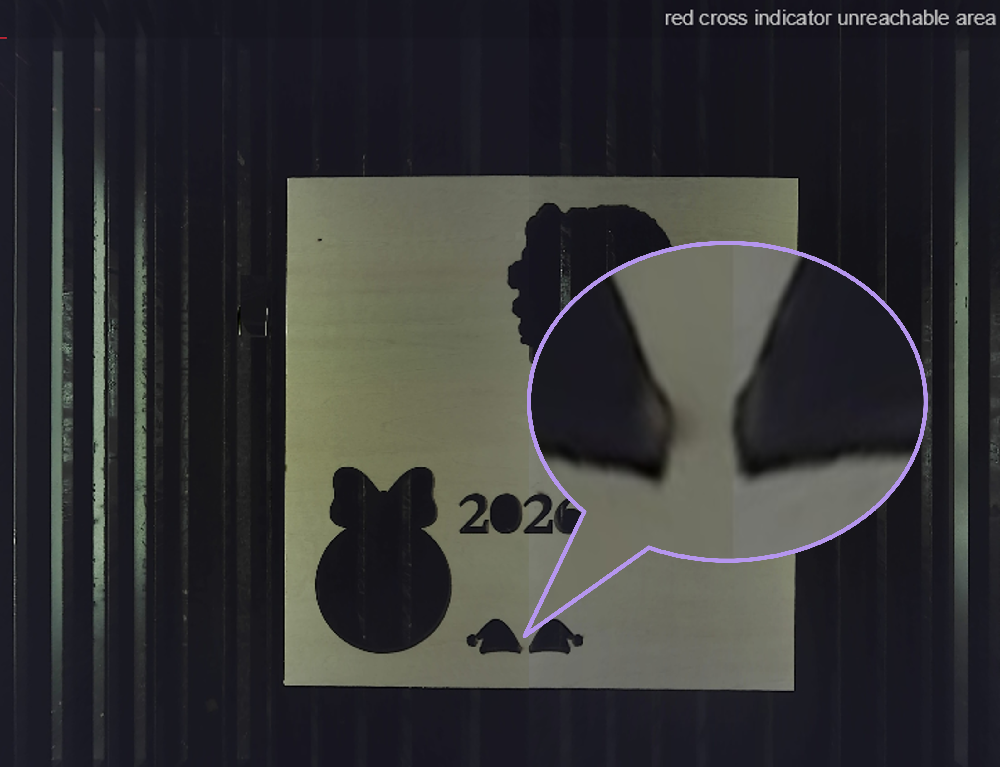The design appears correctly aligned with the material in the software, but the actual processing result is offset