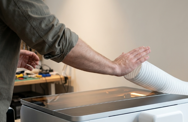 Place your hand at the end of the exhaust duct.