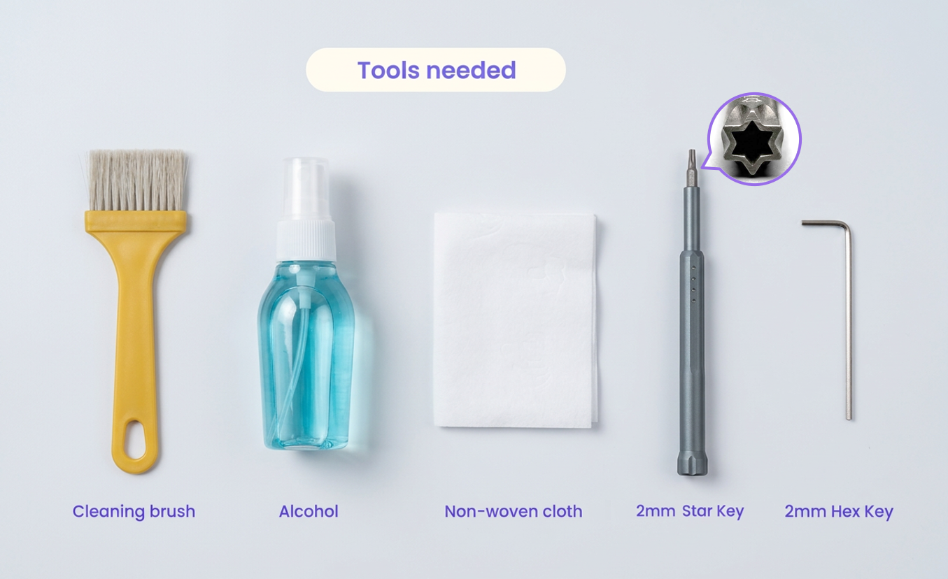 Use the cleaning brush to sweep dust off both fan enclosures. |