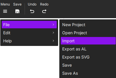 Click Menu → File → Import.