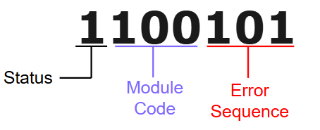 Error codes are typically structured as Status + Module Code + Specific Error Number. Status = 1 usually means an exception. You can view these codes: