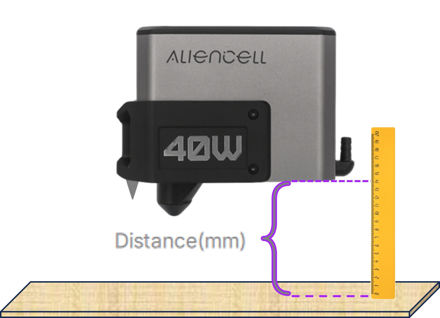It represents the physical distance from the bottom of the laser module to the material surface.