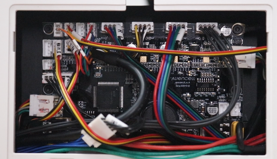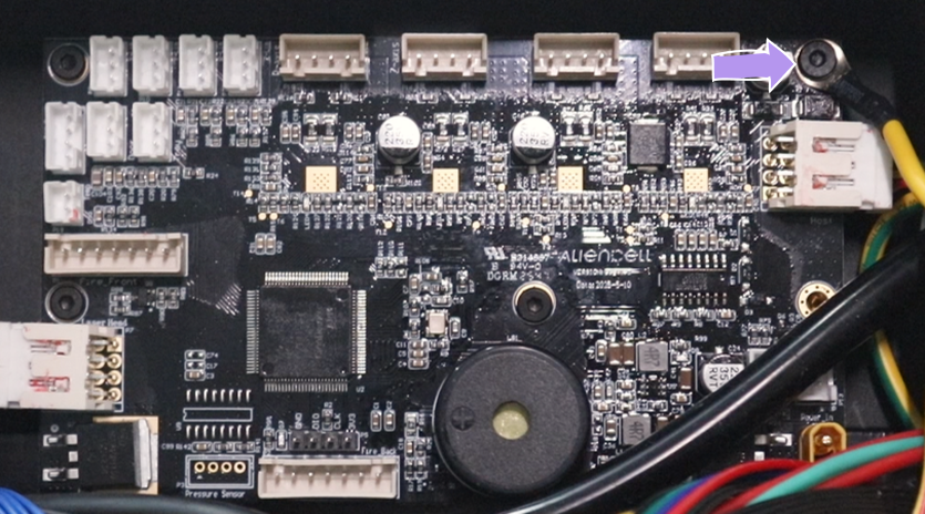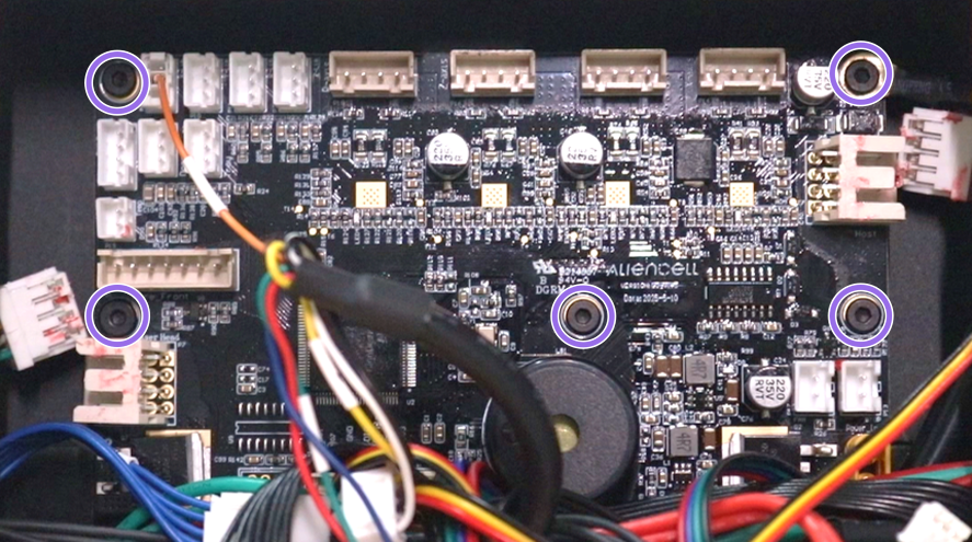 Do not pull the top-left X-Axis Limit Switch cable directly. This connector has a fragile single-wire connection and breaks easily. We recommend fully detaching the driver board from the chassis first, then carefully disconnecting this cable.