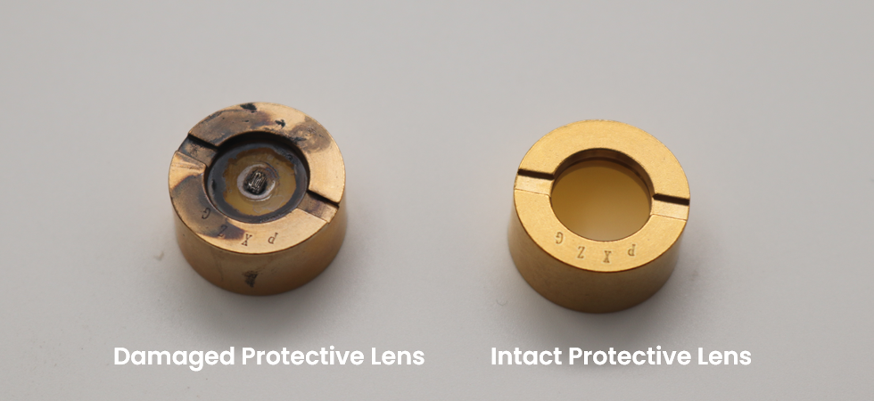 During daily use, the protective lens may develop burn marks or cracks due to laser burning, debris impact, or prolonged high-temperature operation, requiring cleaning or replacement.
