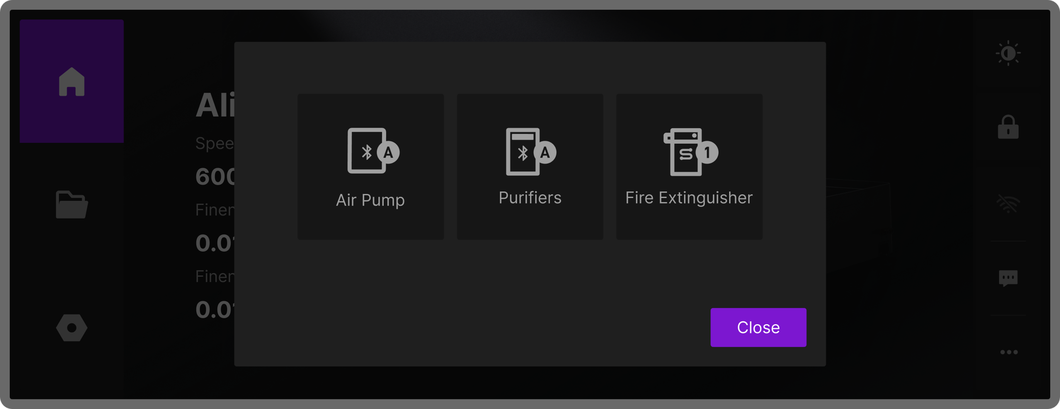 If the device is also connected to an Air Purifier or Flame Safety Device, their icons will appear in the pop-up list as well. Users can click the corresponding icons to view or adjust their operational status.