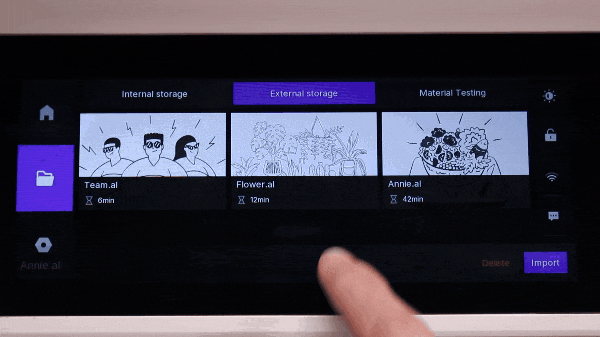 The Aliencell X1 laser engraver supports direct connection to external storage devices, allowing you to manage and process files via the touchscreen. Make sure your files are in .al format before transferring them to the external storage device.