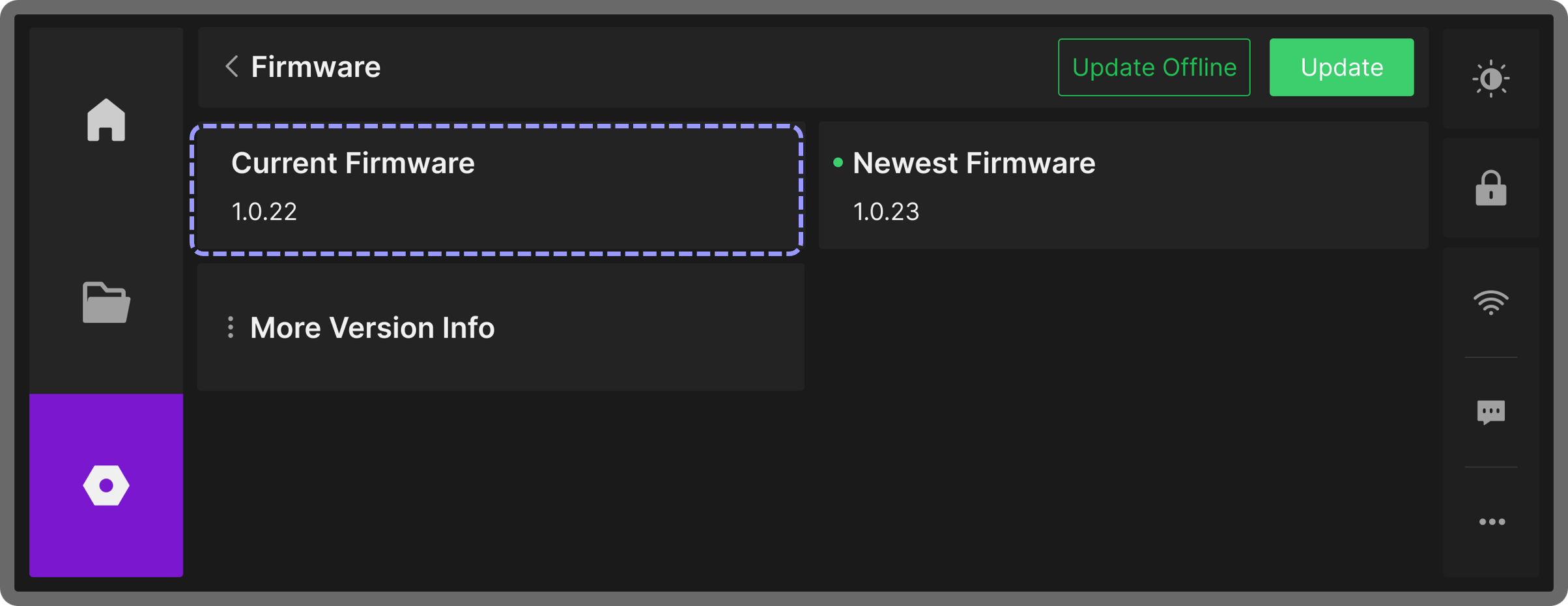 Tap Update Offline. The popup will display firmware packages on the USB drive. Select the target firmware and tap Update in the top-right corner to confirm and start the update process.