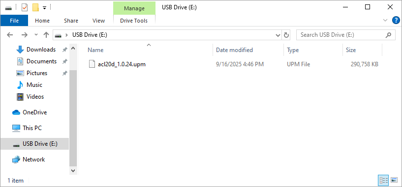 Download the required firmware version from Firmware Version Details and copy the file to a USB drive.