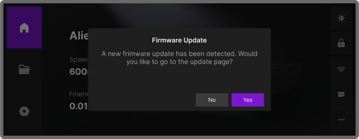 Automatic Check on Startup: When the device powers on and connects to the server, it automatically checks for new firmware. If a new version is available, a popup will notify you. Tap Yes to enter the firmware update page.