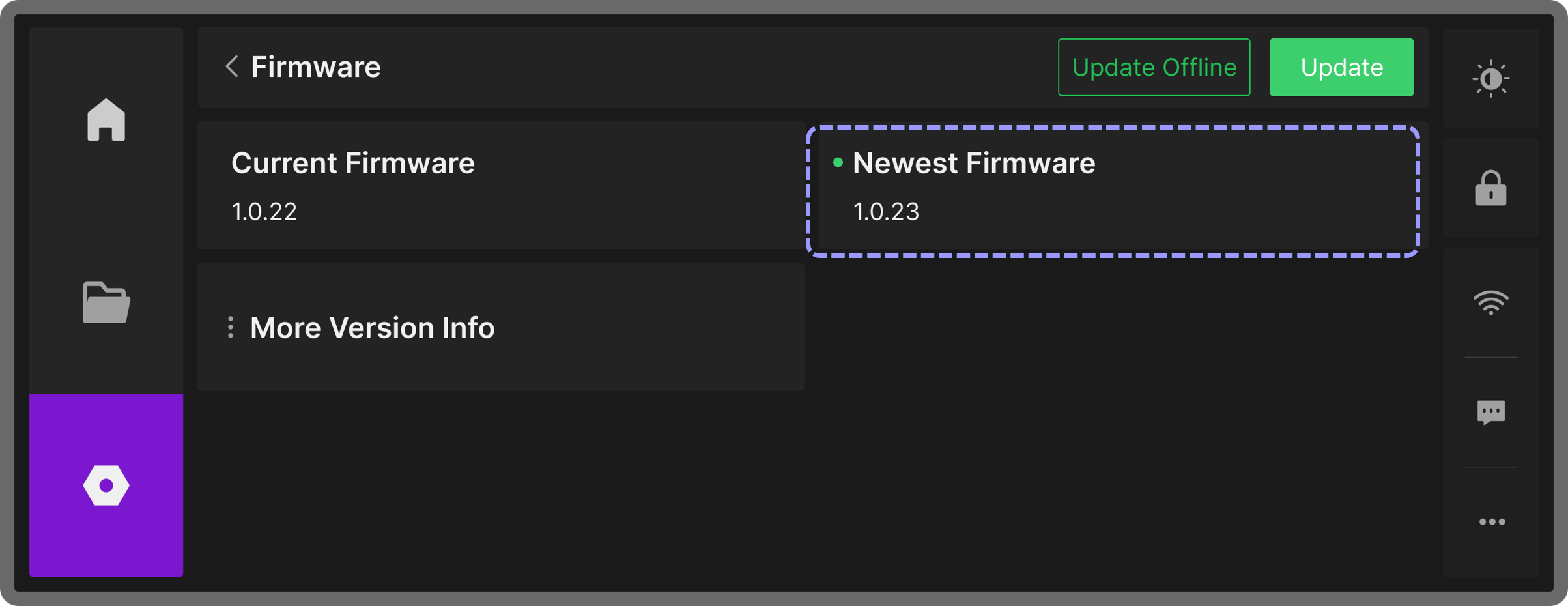 icon, go to General > Firmware, and if a green dot appears next to Newest Firmware, a new firmware is available.