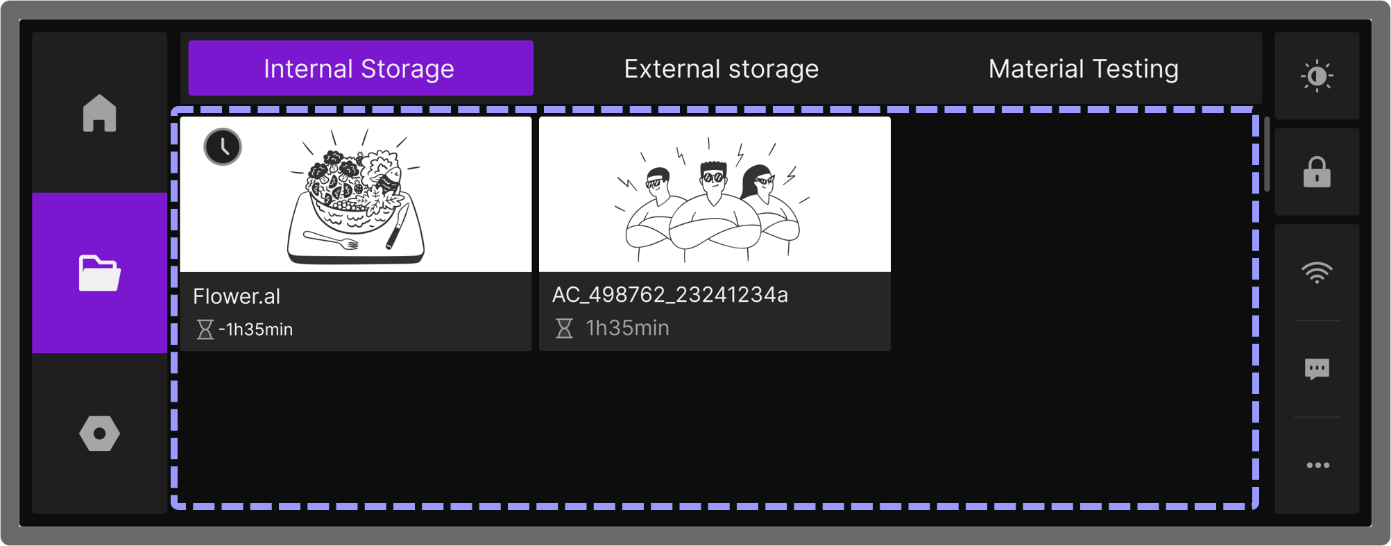 The Internal Storage is used to save both the device’s internal files and temporary files sent from the software. Temporary files are marked with a