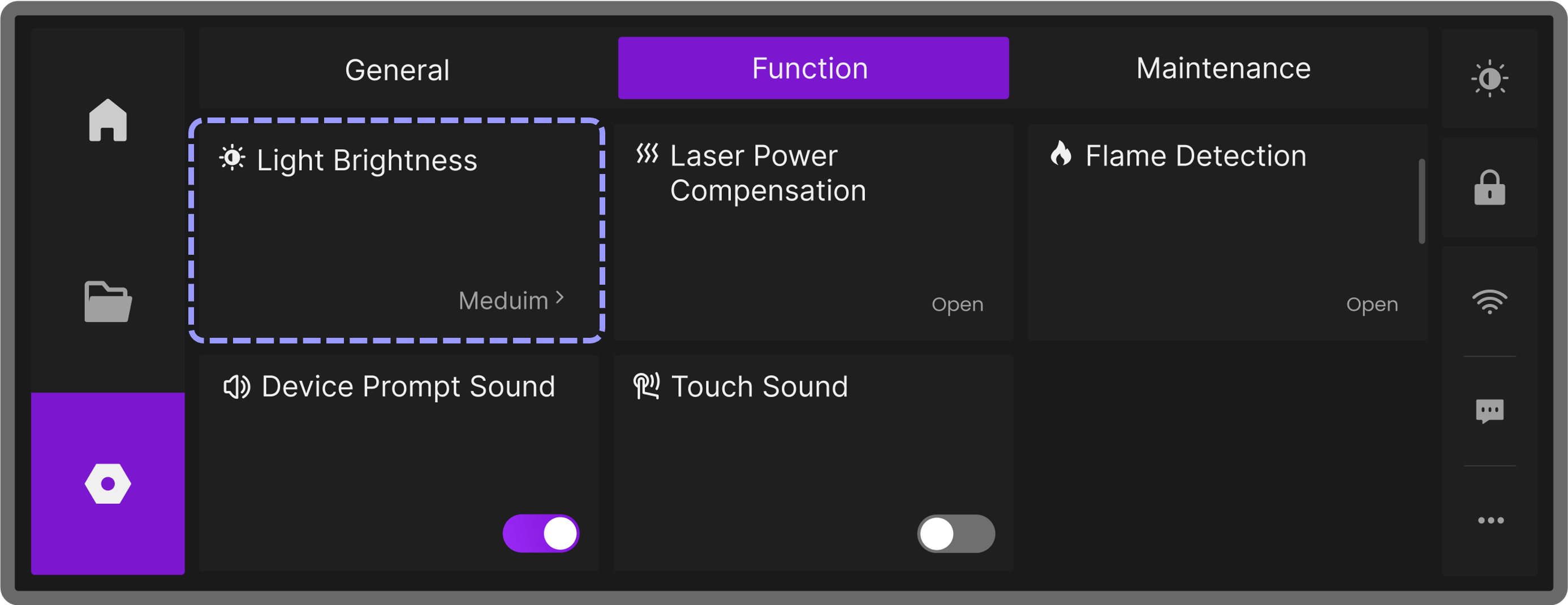 Users can flexibly choose the most suitable brightness based on the working environment, material color, and personal preference to optimize the engraving experience and improve efficiency.