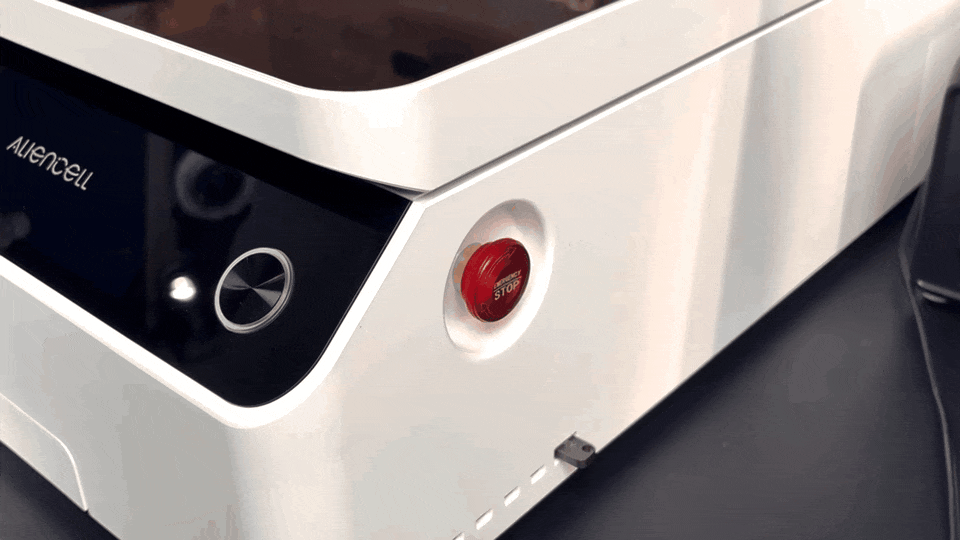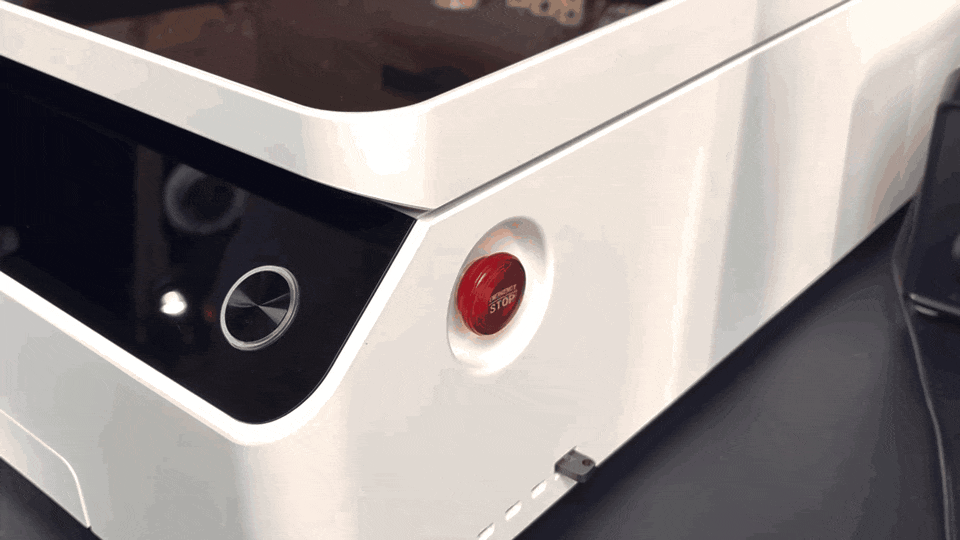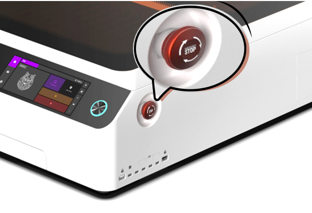 The Emergency Stop Button on the laser engraver is a safety device designed to immediately cut off power or stop all motion and laser output in case of an emergency, preventing personal injury, equipment damage, or fire hazards.